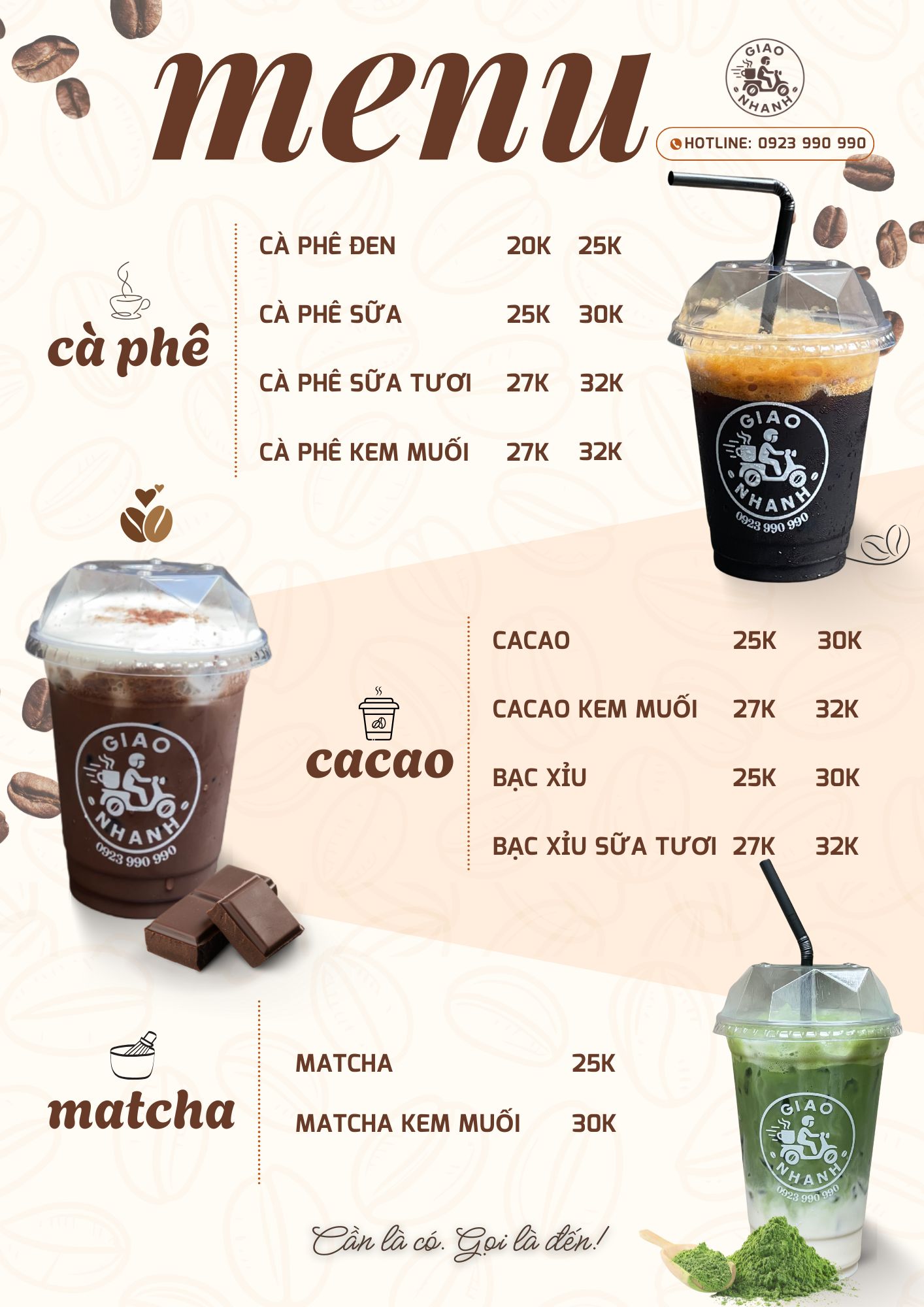 Menu của chúng tôi được xây dựng dựa trên sự quan sát kỹ lưỡng thói quen và sở thích của dân văn phòng, những người luôn cần năng lượng nhanh chóng, tiện lợi, nhưng vẫn đòi hỏi chất lượng và sự tinh tế trong từng ngụm. Từ những lựa chọn truyền thống đến các biến tấu hiện đại, GiaoNhanh cam kết mang đến sự hài lòng tuyệt đối, và đặc biệt, chúng tôi luôn ghi nhớ “gu” riêng của bạn để mỗi lần đặt hàng đều là một trải nghiệm hoàn hảo không cần lặp lại yêu cầu.